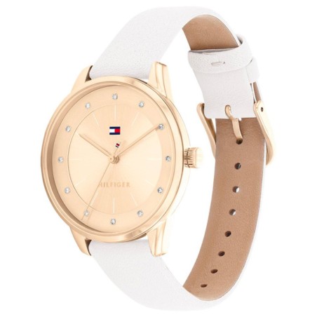 Montre Tommy Hilfiger Femme Paige bracelet cuir blanc index en oxydes de zirconium