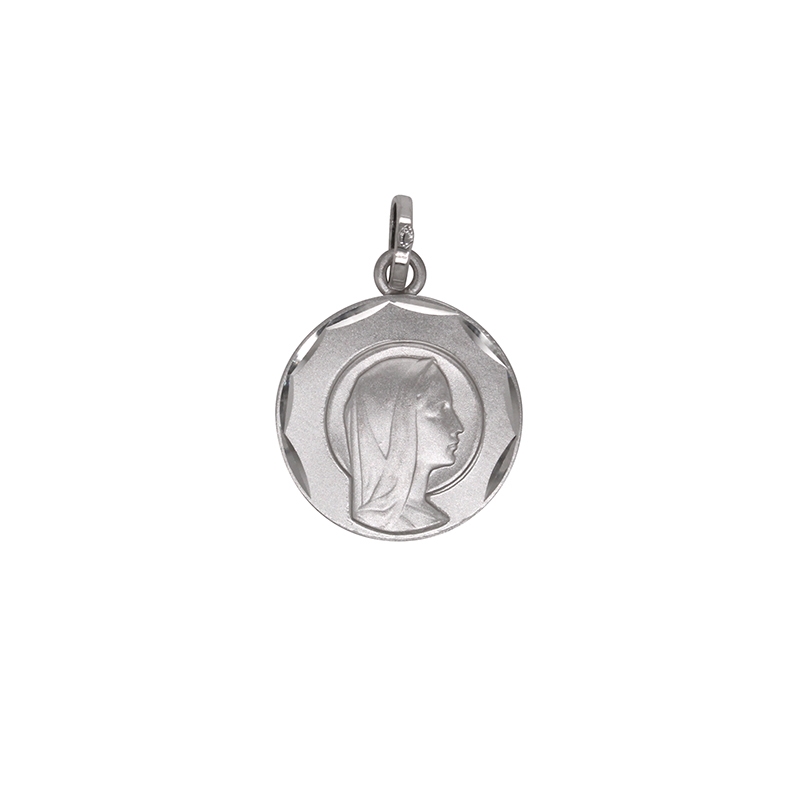 Carador vous propose cette médaille en or blanc 375/000 représentant la vierge Marie auréolée.