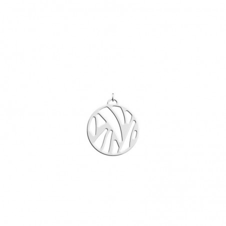 Elle vous propose cet original pendentif rond de 25 mm finition argentée au design épuré et contemporain inspiré des plumes d'un perroquet