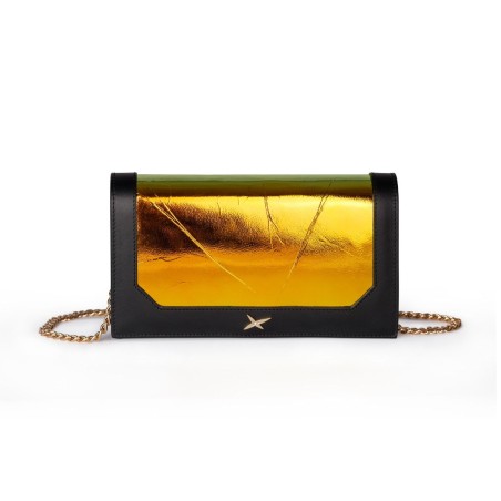 Ce petit sac en cuir noir, agrémenté d'une bandoulière en chaîne et d'un rabat aux couleurs holographiques, ne manque pas de faire sensation ! Son allure captivante attire tous les regards, et il se porte avec élégance aussi bien de jour que de nuit, apportant une touche de glamour et d'originalité à vos tenues.