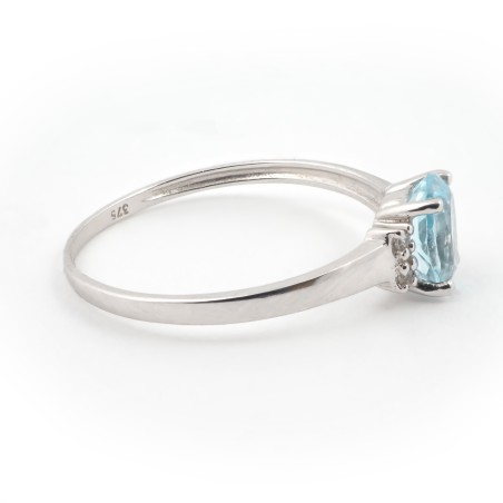 Ce solitaire est en or blanc 9 carats ornée d'une topaze et accompagnée d'oxydes. Pour des fiançailles, pour un événement spécial ou simplement pour offir, cette magnifique bague sera le plus beau des cadeaux ! La mise à taille est gratuite.