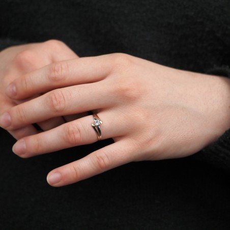Solitaire Carador fantaisie or jaune et blanc 375/000 et oxyde de zirconium