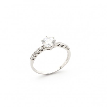 Cet adorable solitaire accompagné est en or blanc 375/000et oxydes de zirconium. Un bijou parfait pour une demande de fiançailles ou simplement pour faire plaisir. Carador vous propose une belle collection de bijoux en or blanc. La mise à taille est gratuite, demandez votre taille !