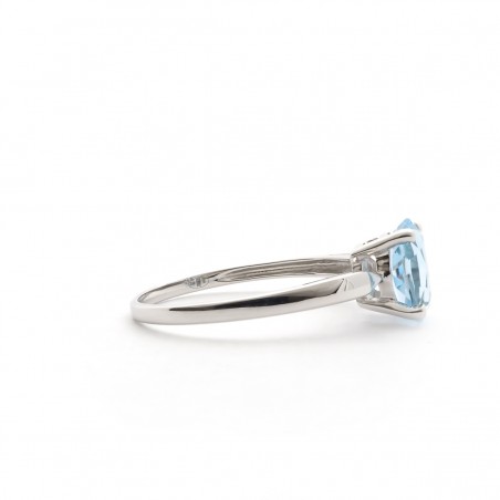 Le solitaire est une bague symbolisant un moment fort de la vie et votre histoire est notre métier, c'est pourquoi nous vous proposons ce superbe bijou pour participer à votre bonheur. Bague en or blanc 375/000 et Topaze bleu ciel.