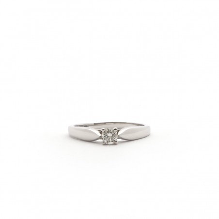 La bague que vous propose Carador est un ravissant solitaire en or blanc 375/000 et diamant de 0,18 cts. C'est un bijou que l'on offre ou que l'on reçoit pour des grandes occasions. La mise à taille est gratuite, renseignez-vous auprès du service client.