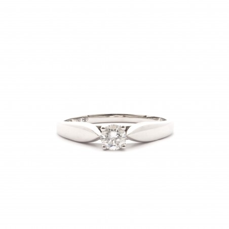 La bague que vous propose Carador est un ravissant solitaire en or blanc 750/000 et diamant de 0,2 cts. C'est un bijou que l'on offre ou que l'on reçoit pour des grandes occasions. La mise à taille est gratuite, renseignez-vous auprès du service client.
