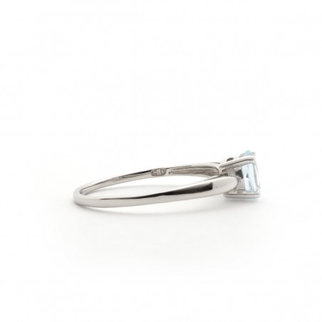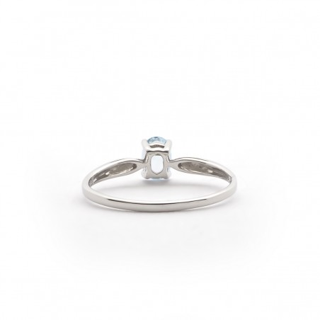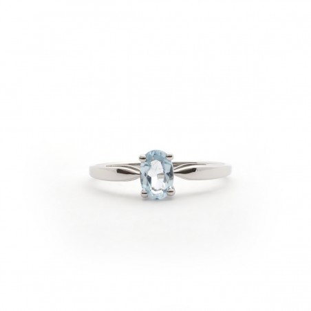 Sertie quatre griffes une sublime topaze ovale projette ses reflets bleus cristallins sur tous ceux qui poseront le regard dessus.