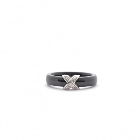 Ultimate Ceramic - Bague Céramique Noire, OR 375/000 et Diamant 0,01 ct